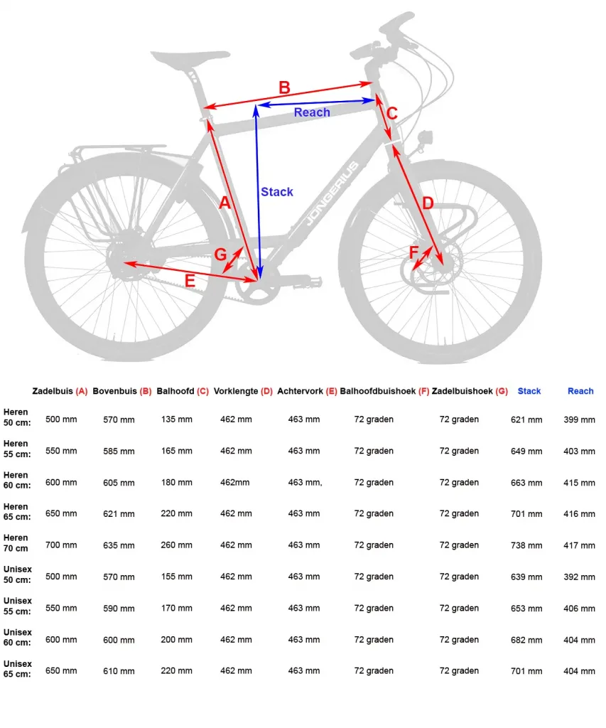 In our XXL collection for taller cyclists we have an extra high head tube with an extra long front fork for a comfortable seat.
