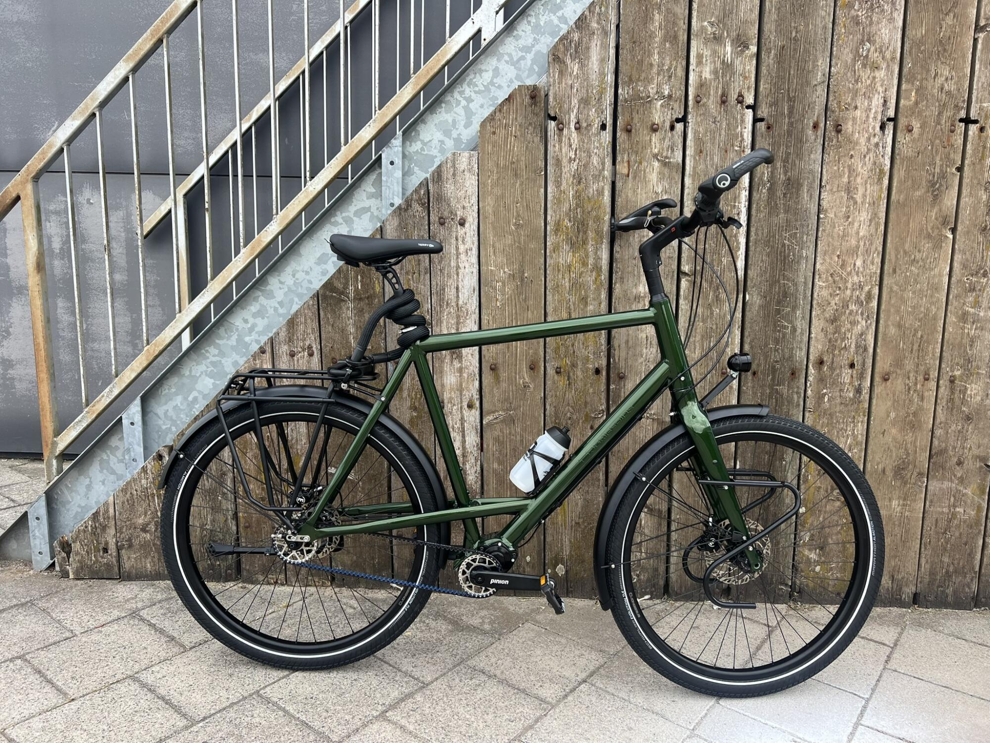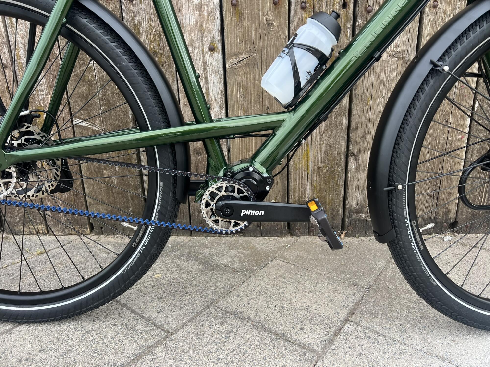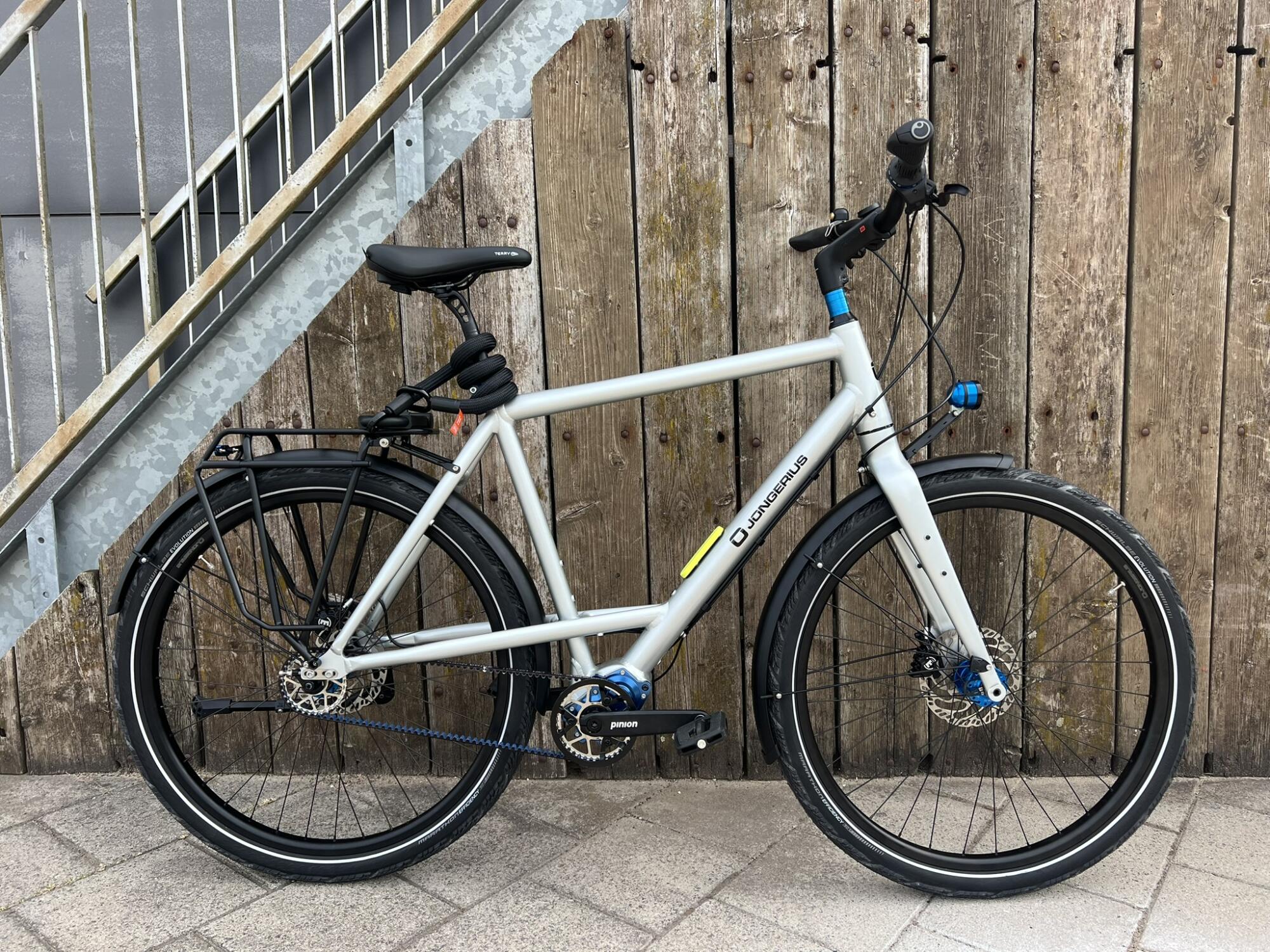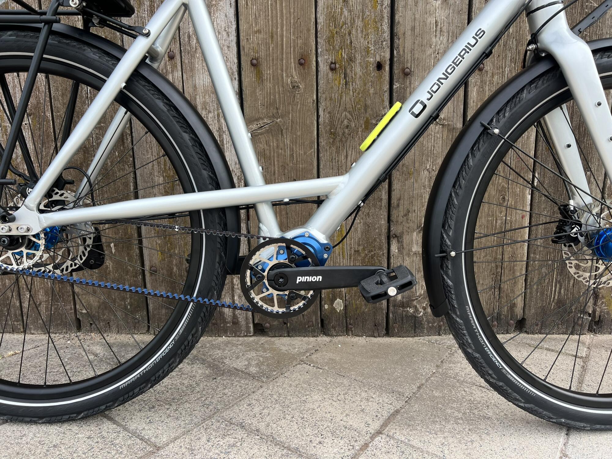 Bij het zien van de fiets trekt de in het midden van de fiets geplaatste high-end Pinion versnellingsbak meteen de aandacht. Dit Duitse versnellingssysteem is ontwikkeld door twee ex-medewerkers van de transmissie-afdeling van autofabrikant Porsche. Deze geavanceerde techniek voldoet perfect aan de hoge kwaliteitseisen die Jongerius aan haar onderdelen stelt.